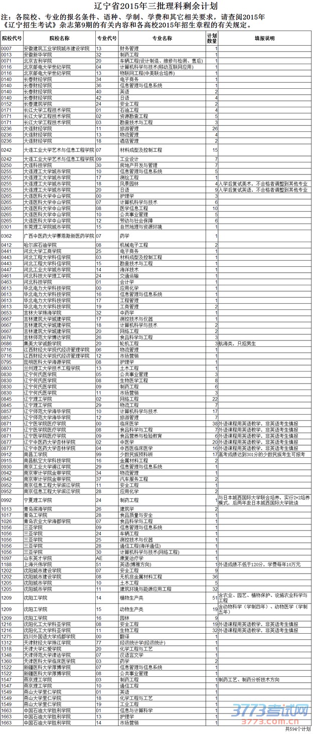 [图文]2015辽宁高考三本理科补录剩余计划专业