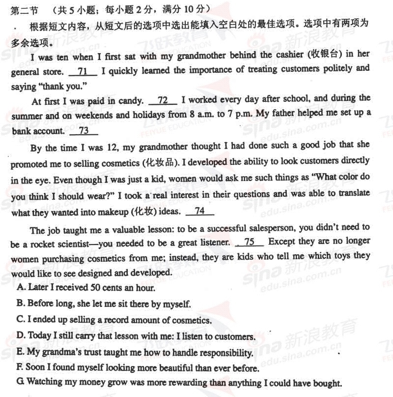 [组图]2010年辽宁高考英语试题及答案