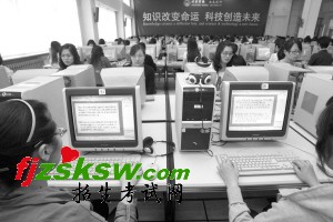 评卷现场在一个布满电脑的超大室内广场里,有约二三百名评卷老师端坐在电脑前,每个评卷老师的电脑上只显示一张试卷中的一道题的答题情况,考生姓名等其他信息均无法看到,也就是说评卷老师不会知道评的是谁的卷。整个评卷现场非常安静,惟一能听到的就是“噼里啪啦”敲击键盘的声音。