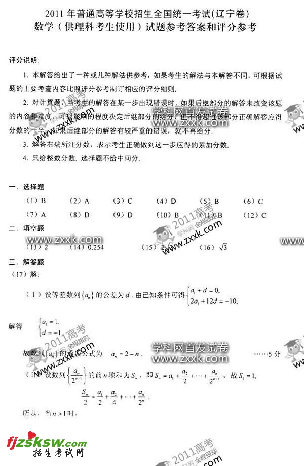 [组图]辽宁2011年高考理科数学试题答案