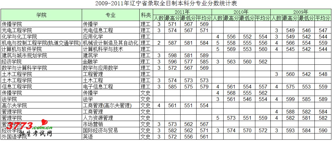 [图文]深圳大学2009-2011年辽宁分专业录取分数线