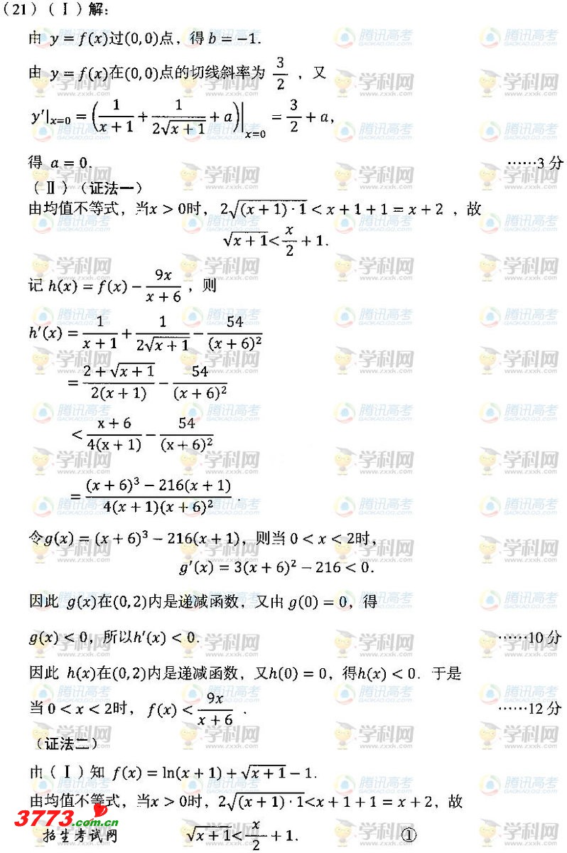 [组图]2012年辽宁高考数学理科试卷及答案发布