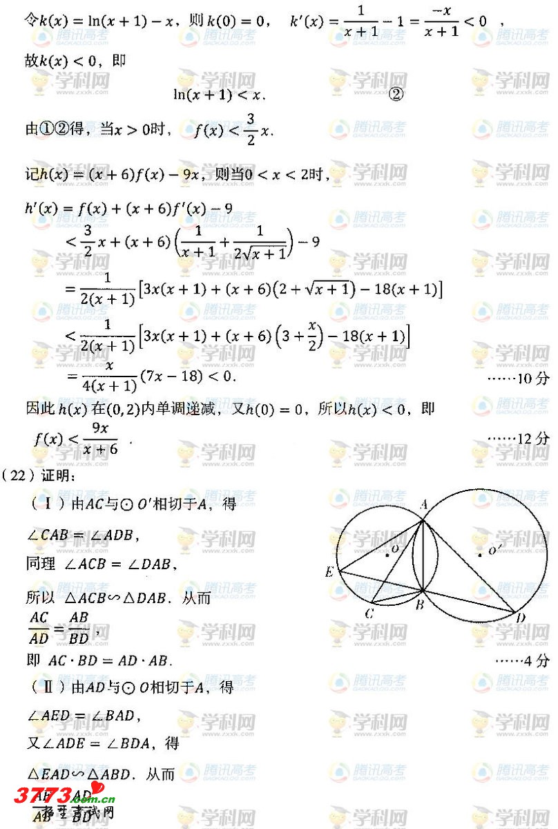 [组图]2012年辽宁高考数学理科试卷及答案发布