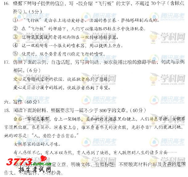 [组图]2012年辽宁高考卷语文试卷答案发布