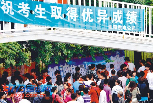 2012年高考,120中学考生进入考场前相互加油(资料图片)