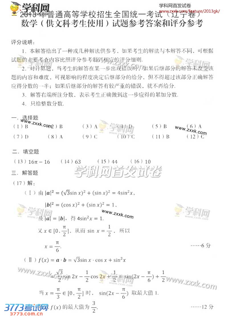[组图]2013辽宁高考数学文科试题及答案