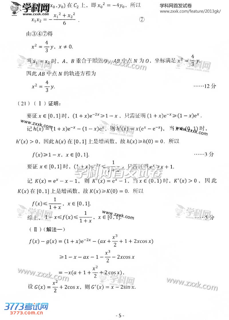 [组图]2013辽宁高考数学理科试题及答案