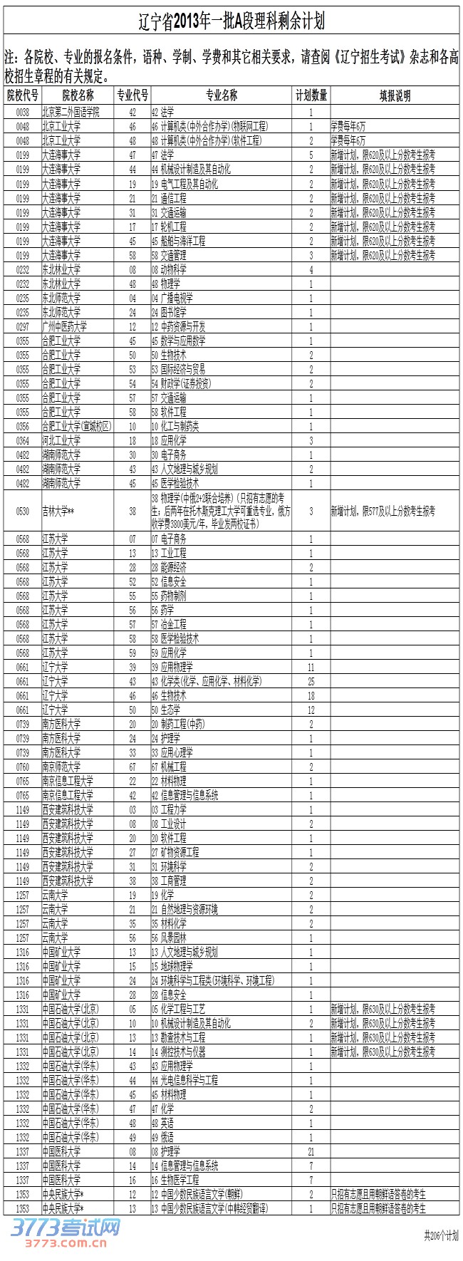 [图文]2013辽宁高考一本A理科补录剩余计划