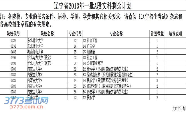 [图文]2013辽宁高考一本A文科补录剩余计划