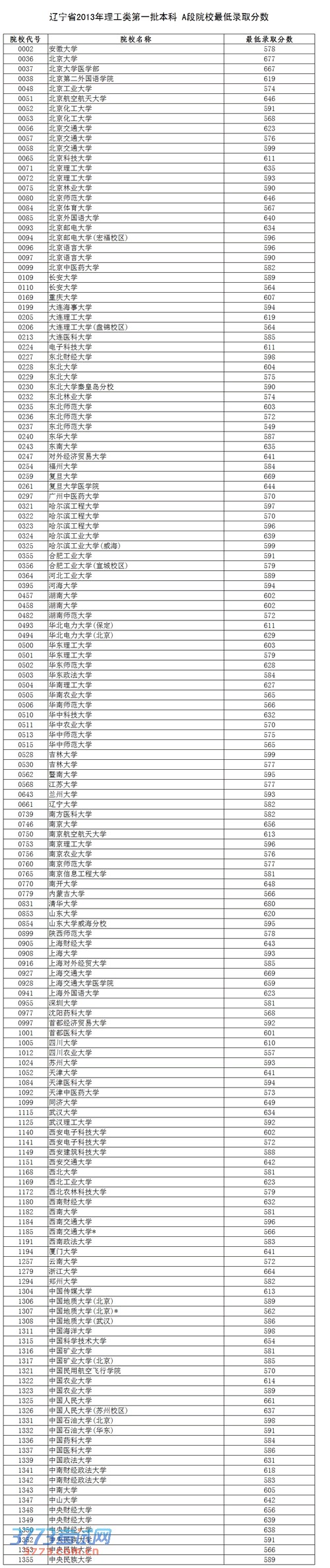 2013辽宁高考理科一A院校录取分数线2013辽宁高考理科一A院校录取分数线