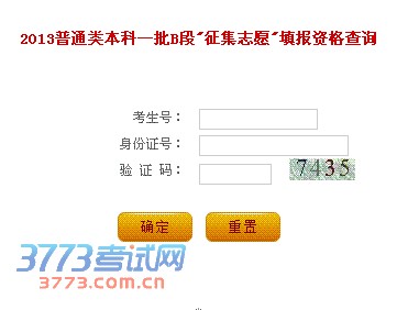 2013普通类本科一批B段"征集志愿"填报资格查询