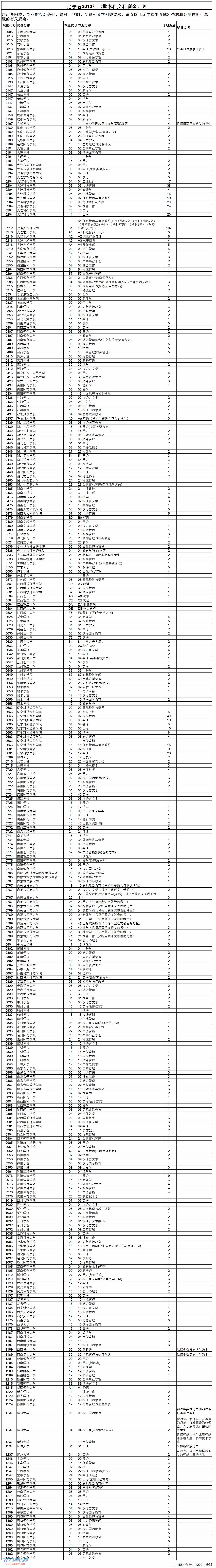 辽宁省2013年二批本科文科剩余计划(点击放大查看)