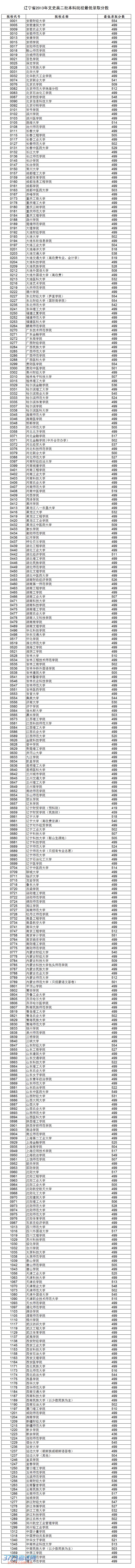 辽宁省2013年文史类二批本科院校最低录取分数