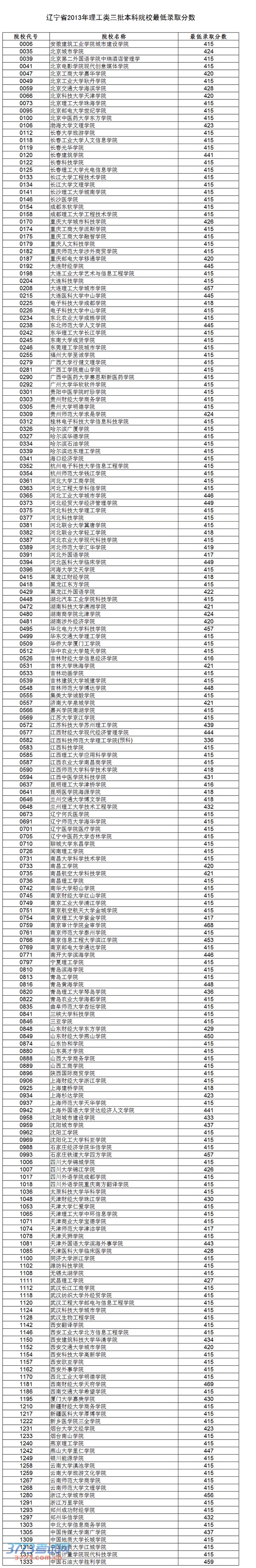 辽宁省2013年理工类三批本科院校最低录取分数辽宁省2013年理工类三批本科院校最低录取分数