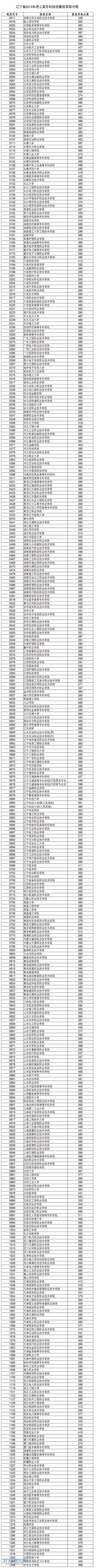 [图文]2013辽宁高考理科专科院校录取分数线