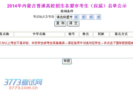 说明:2014年内蒙古普通高校招生各盟市考生(应届)名单公示
