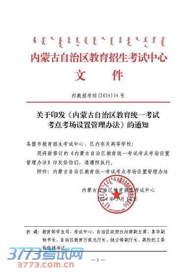 [组图]内蒙古自治区教育考试考点考场设置管理办法