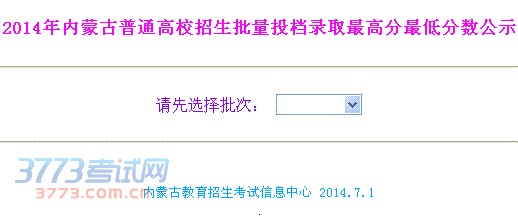 [图文]2014内蒙古高考批量投档录取最高分最低分数公示