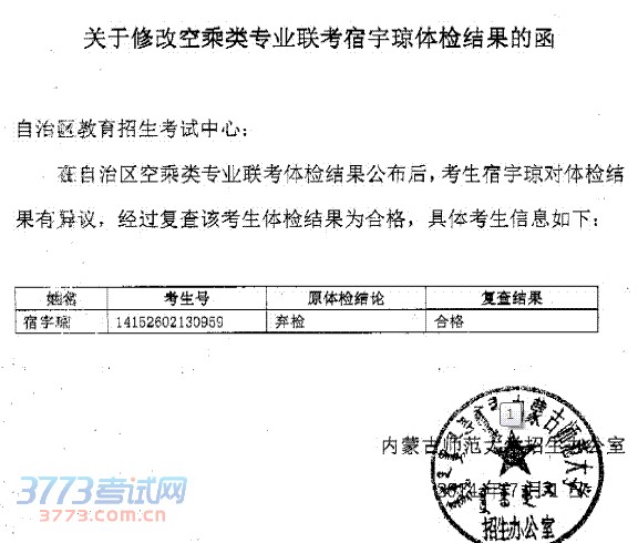 [图文]关于修改空乘类专业联考宿宇琼体检结果的函