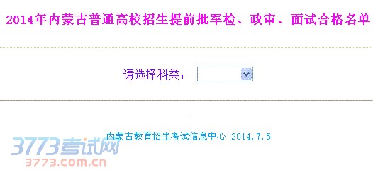 2014年内蒙古普通高校招生提前批军检、政审、面试合格名单