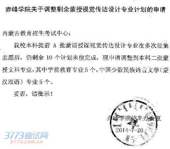 [图文]2014内蒙古高考赤峰学院调整剩余计划的通知