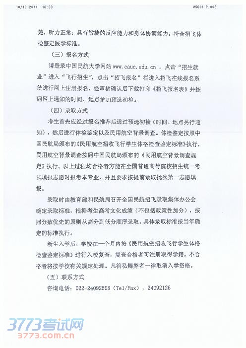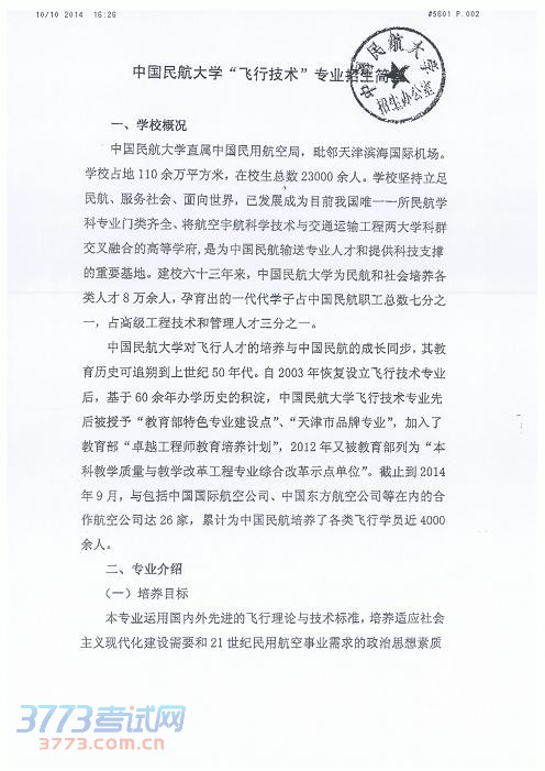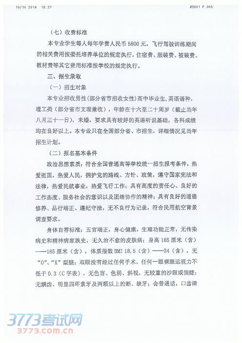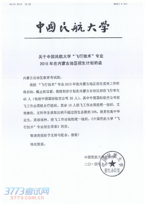 [组图]2015中国民航大学内蒙古招飞计划及章程