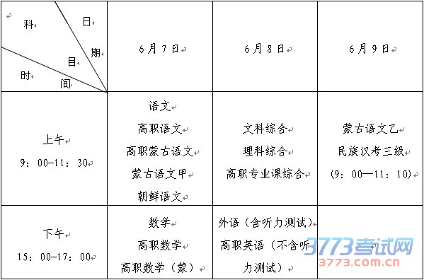 关于2015年内蒙古自治区普通高考时间安排的通知