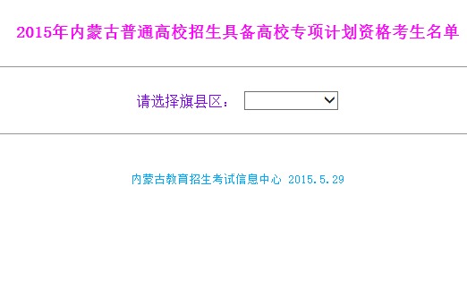 2015年内蒙古普通高校招生具备高校专项计划资格考生名单