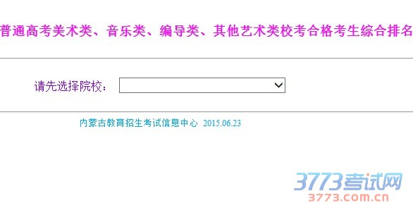 2015年内蒙古自治区普通高考美术类、音乐类、编导类、其他艺术类校考合格考生综合排名公示