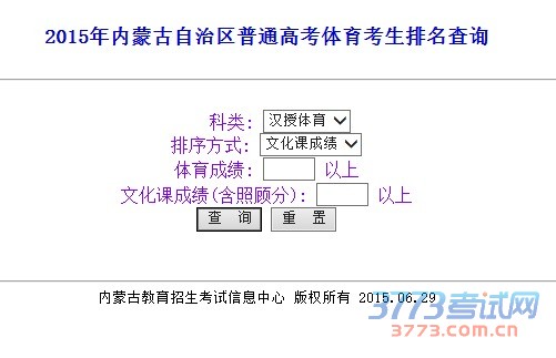 2015年内蒙古自治区普通高考体育考生排名查询