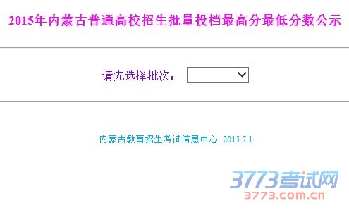 [图文]2015内蒙古高考批量投档最高分最低分数公示