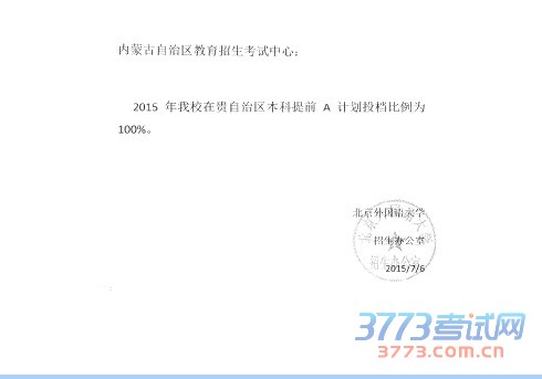 北京外国语大学关于在内蒙古提前批次A计划投档比例的通知