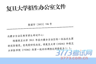 [图文]复旦大学内蒙古高考调整投档比例的通知