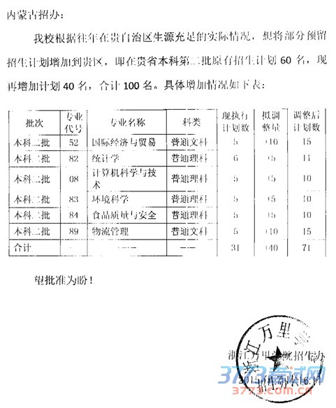 [图文]浙江万里学院内蒙古本科二批增加招生计划的说明
