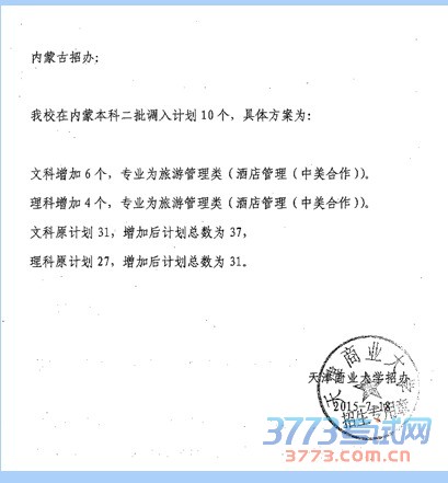 [图文]天津商业大学内蒙古高考增加计划的说明