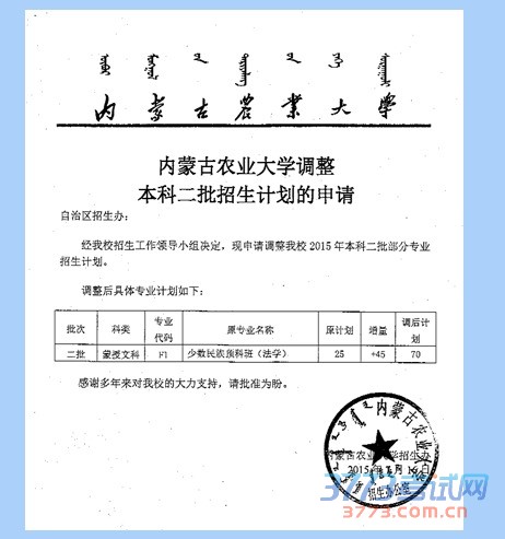[图文]内蒙古农业大学内蒙古增加二本批预科计划的说明