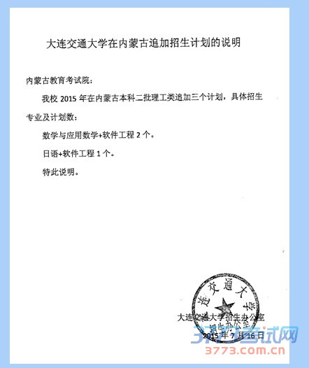 [图文]大连交通大学内蒙古高考增加计划的说明