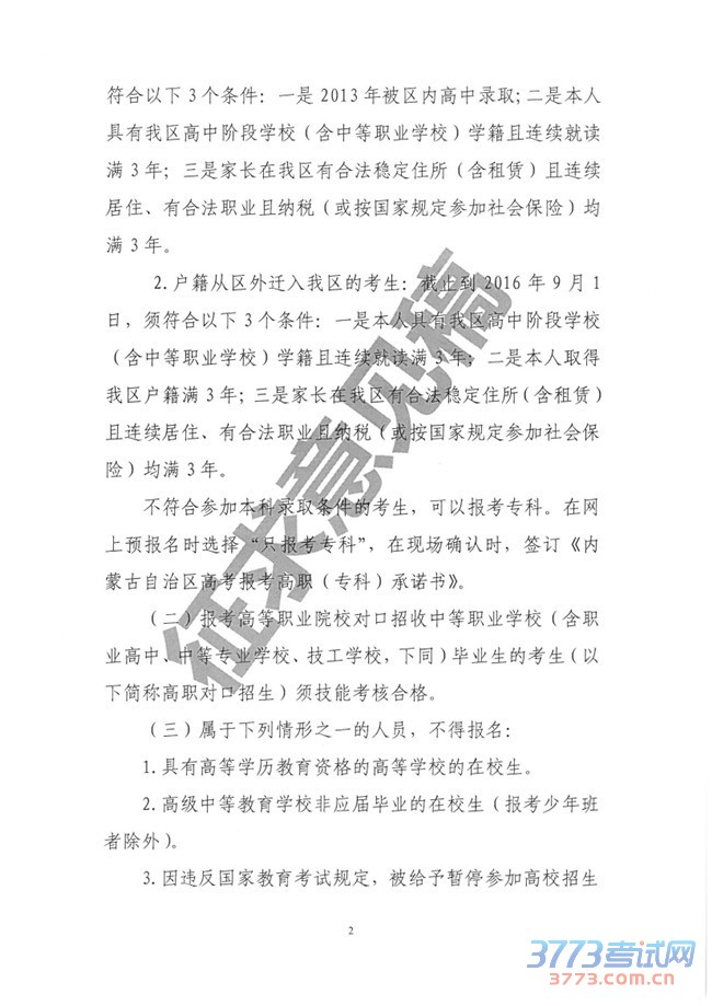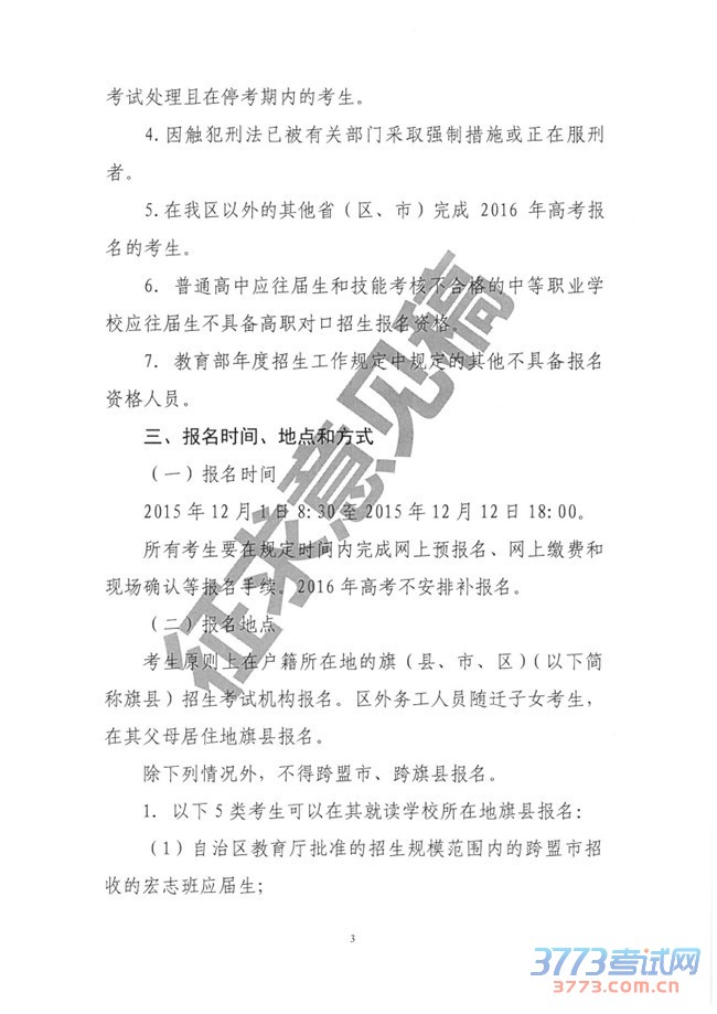 3773考试网2016高考内蒙古高考正文