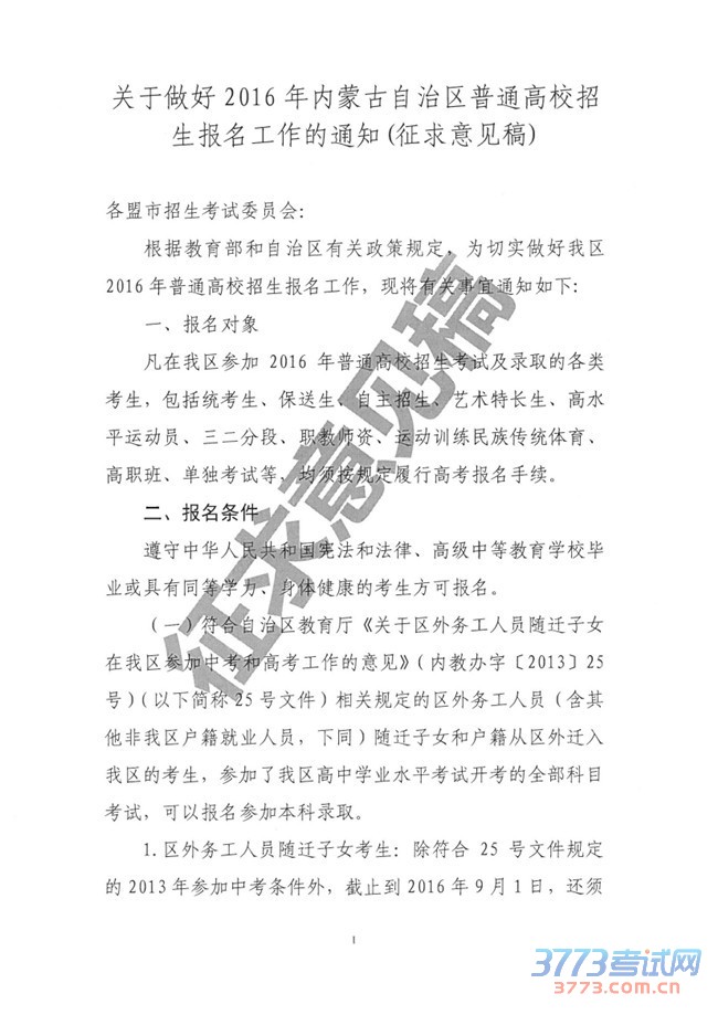 [组图]2016内蒙古随迁子女和户籍从区外迁入我区考生参加高考的相关条件界定工作实施办法(征求意见稿)
