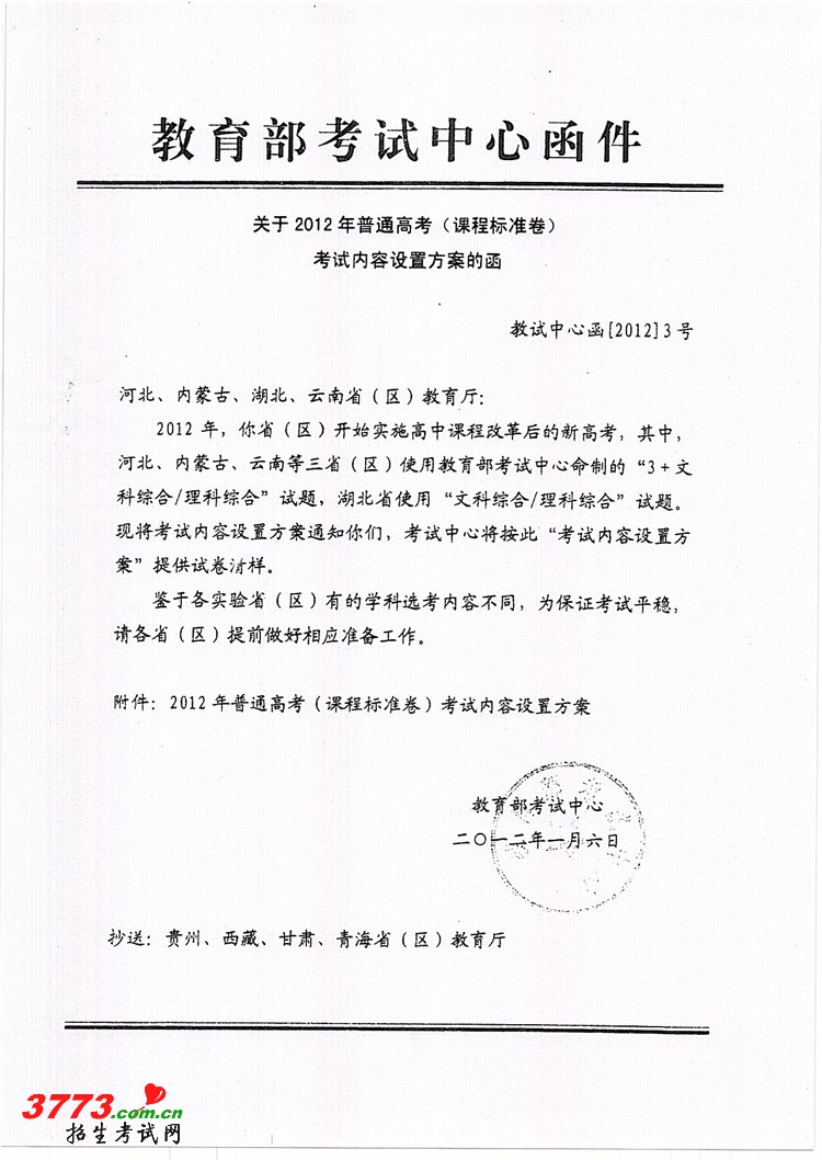 关于2012内蒙古高考课程标准卷考试内容设置方案的函
