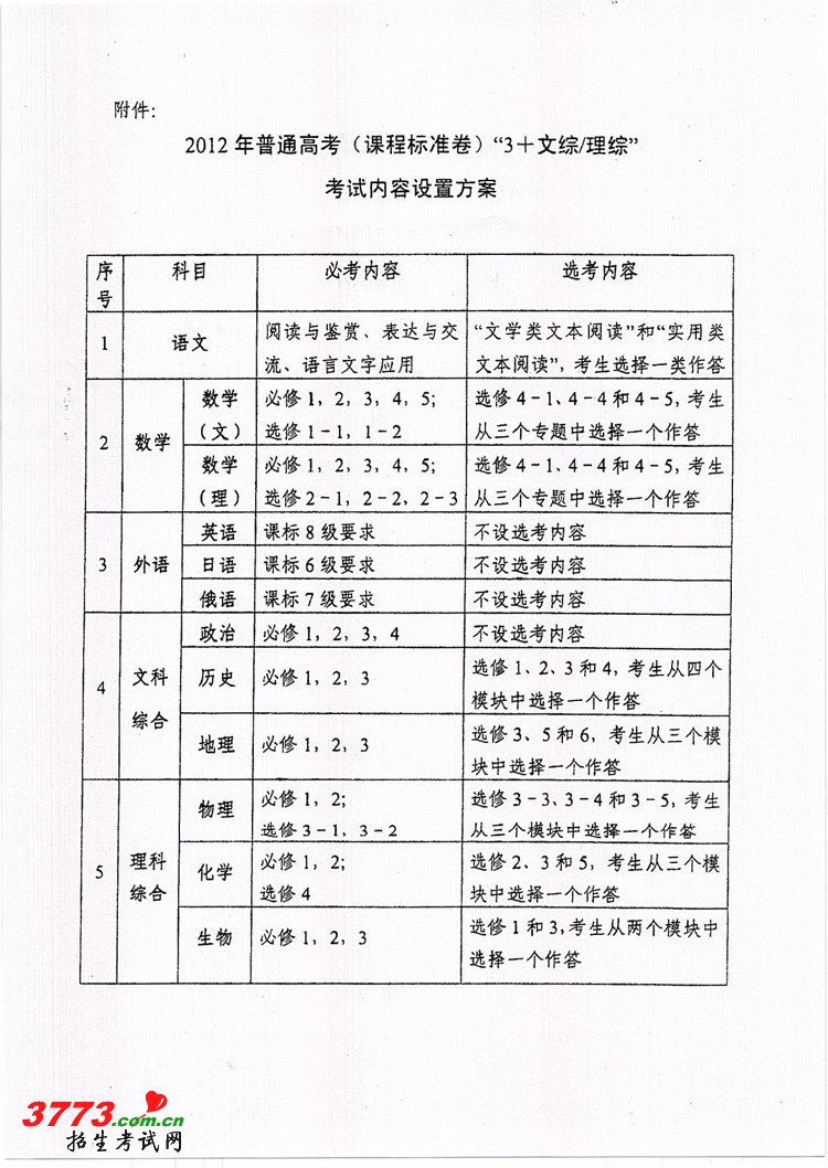 [组图]关于2012内蒙古高考课程标准卷考试内容设置方案的函