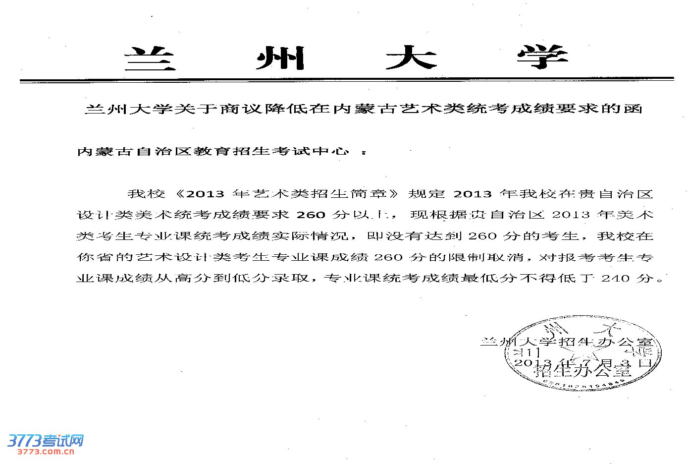 [图文]兰州大学关于商议降低在内蒙古艺术类统考成绩要求的函