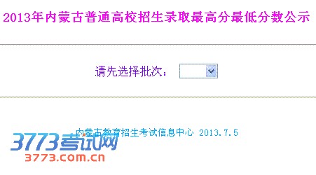 [图文]2013年内蒙古高考录取最高分最低分数公示