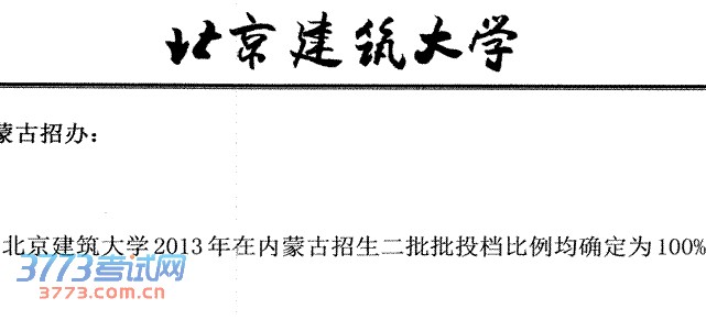 [图文]北京建筑大学2013内蒙古调整投档比例的公告