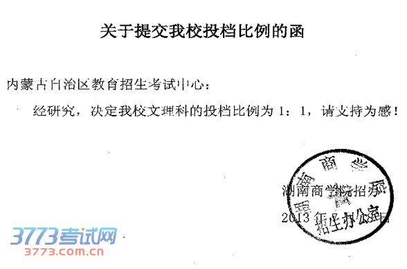 [图文]湖南商学院2013内蒙古调整投档比例的公告