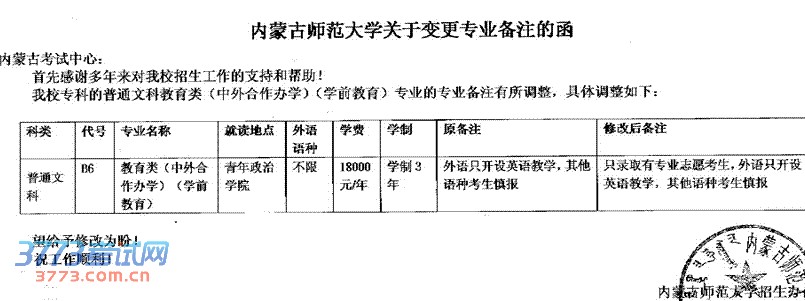 [图文]内蒙古师范大学2013内蒙古变更专业备注的函