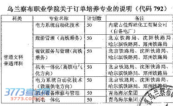 [图文]乌兰察布职业学院2013内蒙古订单培养专业的说明