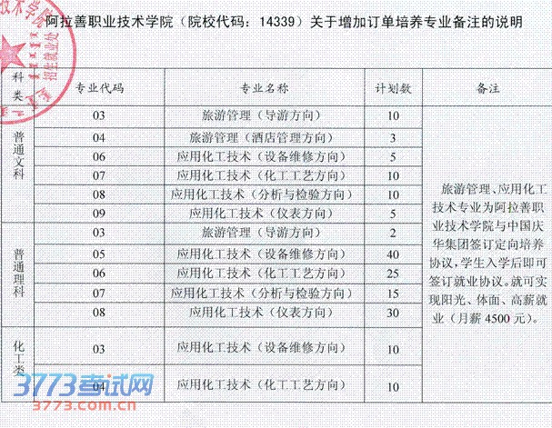 [图文]阿拉善职业技术学院增加订单培养专业备注的说明