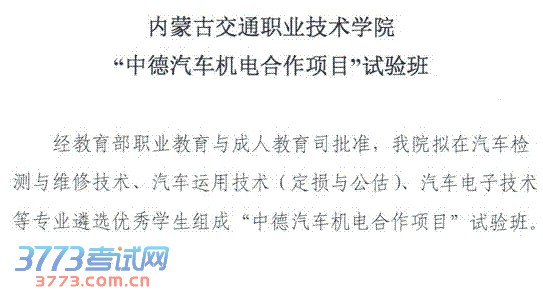 内蒙古交通职业技术学院“中德汽车机电合作项目”试验班的说明