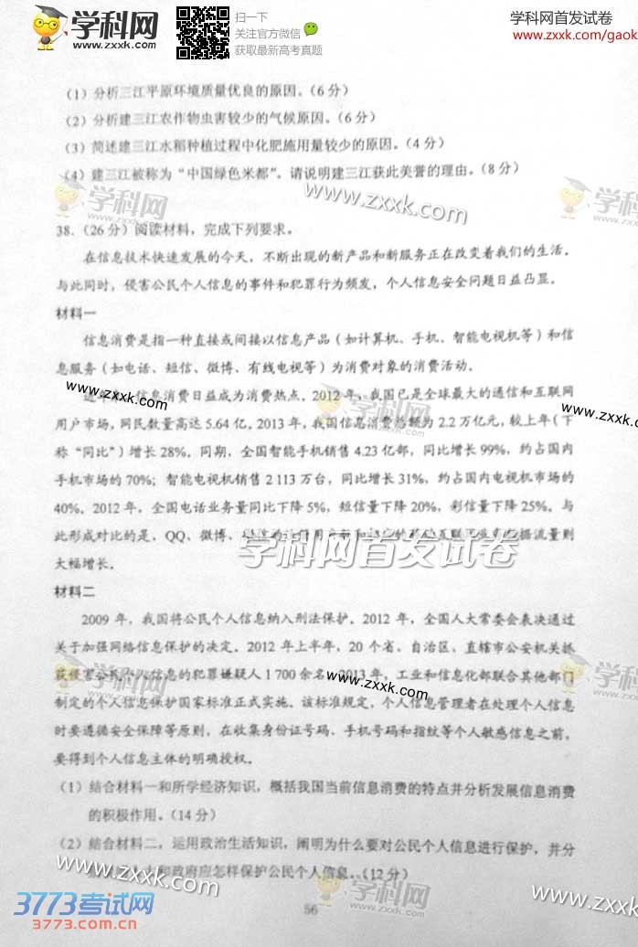 2014宁夏高考文综试题及答案(文科综合)